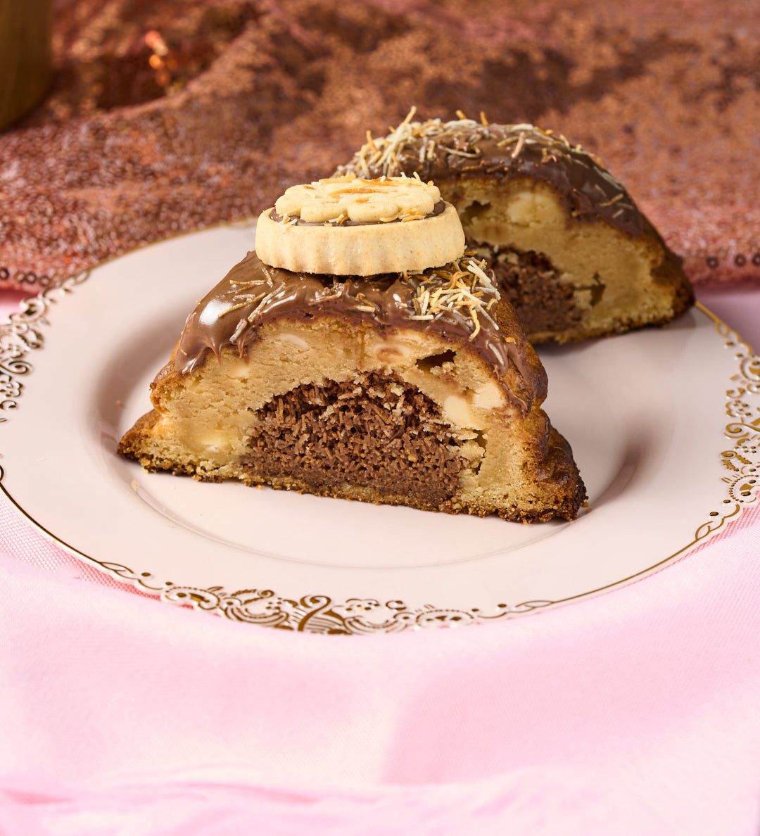 Butter, vegetable shortening, brown sugar, refined sugar, eggs, wheat flour, cocoa powder, different type of spices, Belgium chocolate, nuts, essences, leavening powders, dairy, dehydrated fruits, and some candies for topping and visualization, salt.